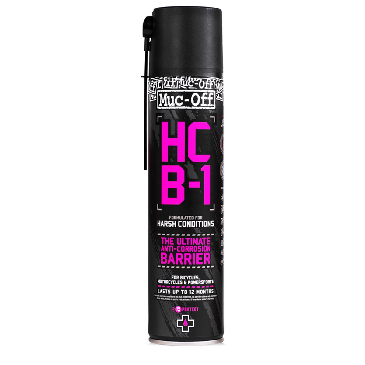Muc-Off Harsh Conditions Barrier (HCB-1) uses a state-of-the-art, thin film coating to give your bike long term protection against rust and corrosion. It even works on surfaces that already have rust… it simply stops rust in its tracks, removing it altogether! Particularly effective in very harsh conditions, our formula is ideal for protecting your two-wheeled toy over the winter months when large amounts of road salts are out on the roads.
